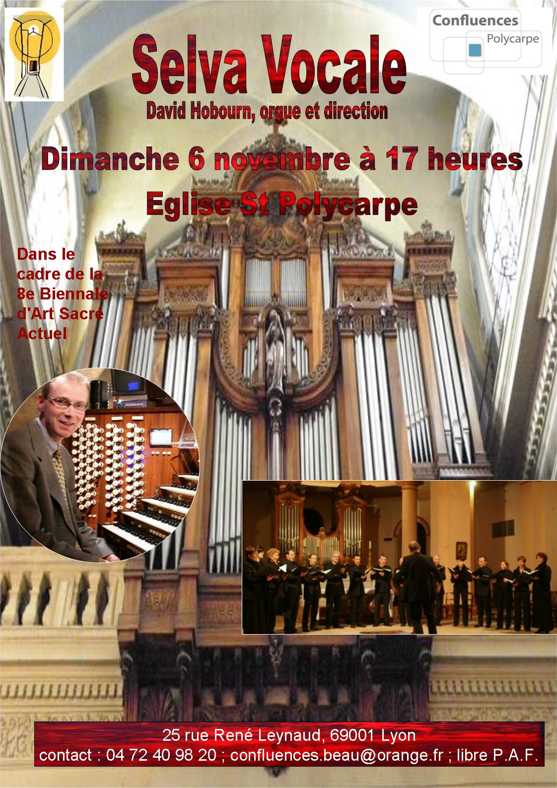 l’Eglise Saint Polycarpe accueille, dimanche 6 novembre à  17 heures le groupe Selva Vocale, sous la direction de David Hobourn pour un concert voix et orgue…